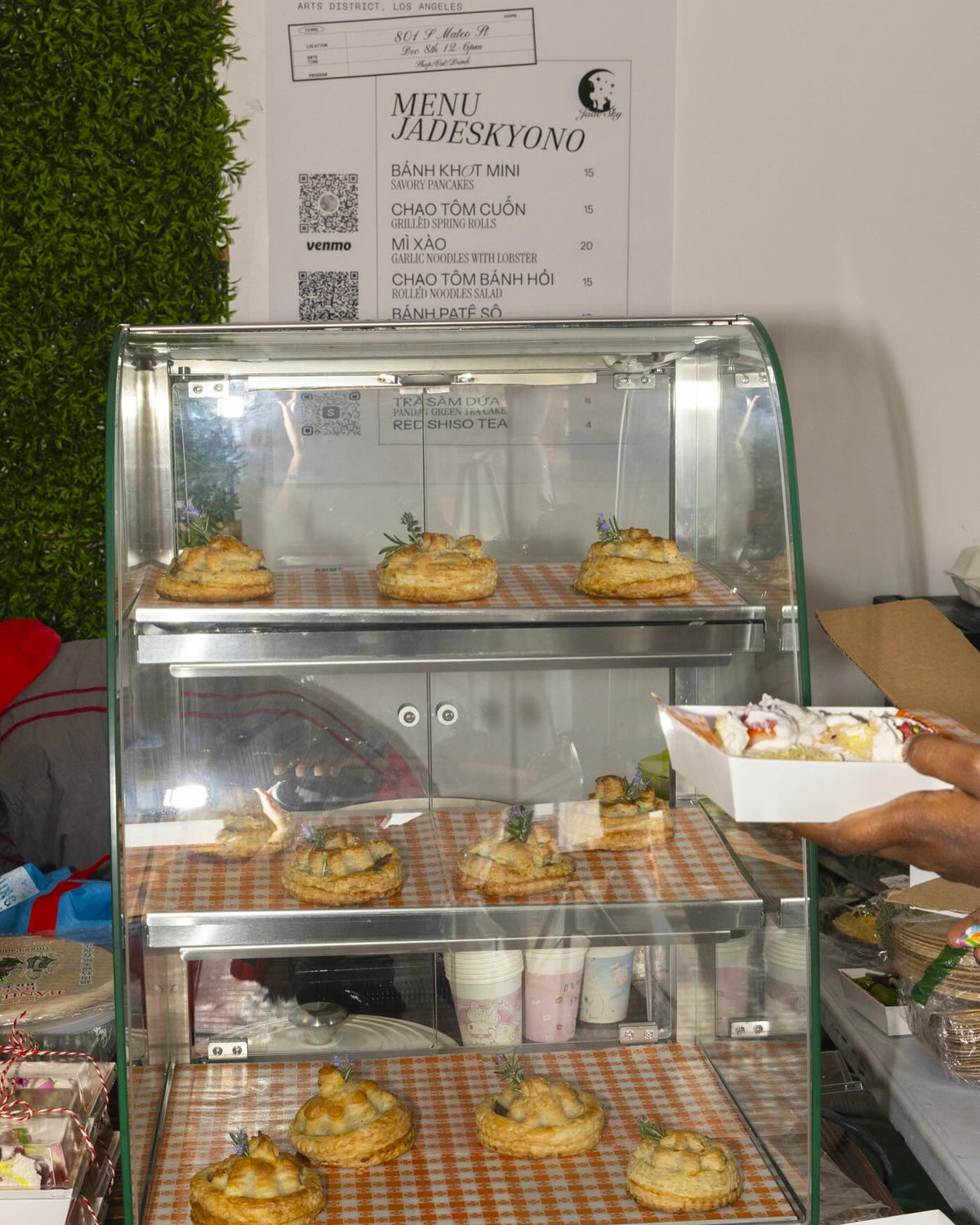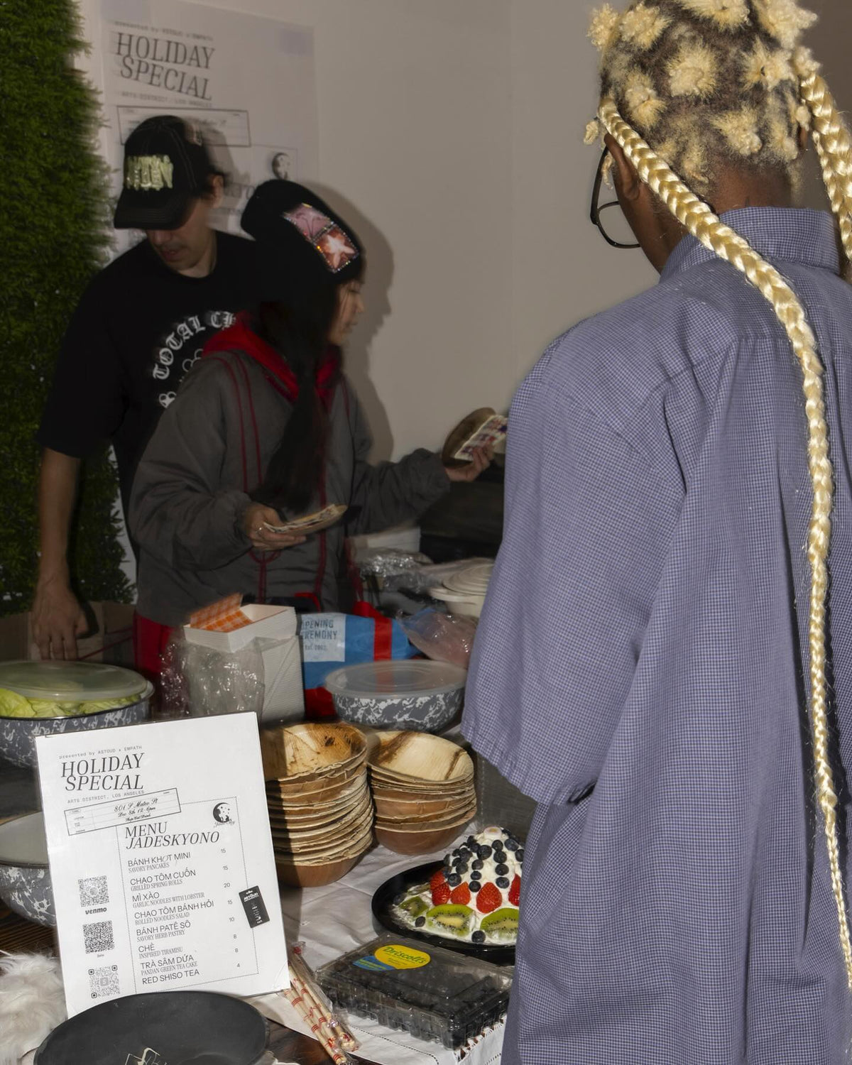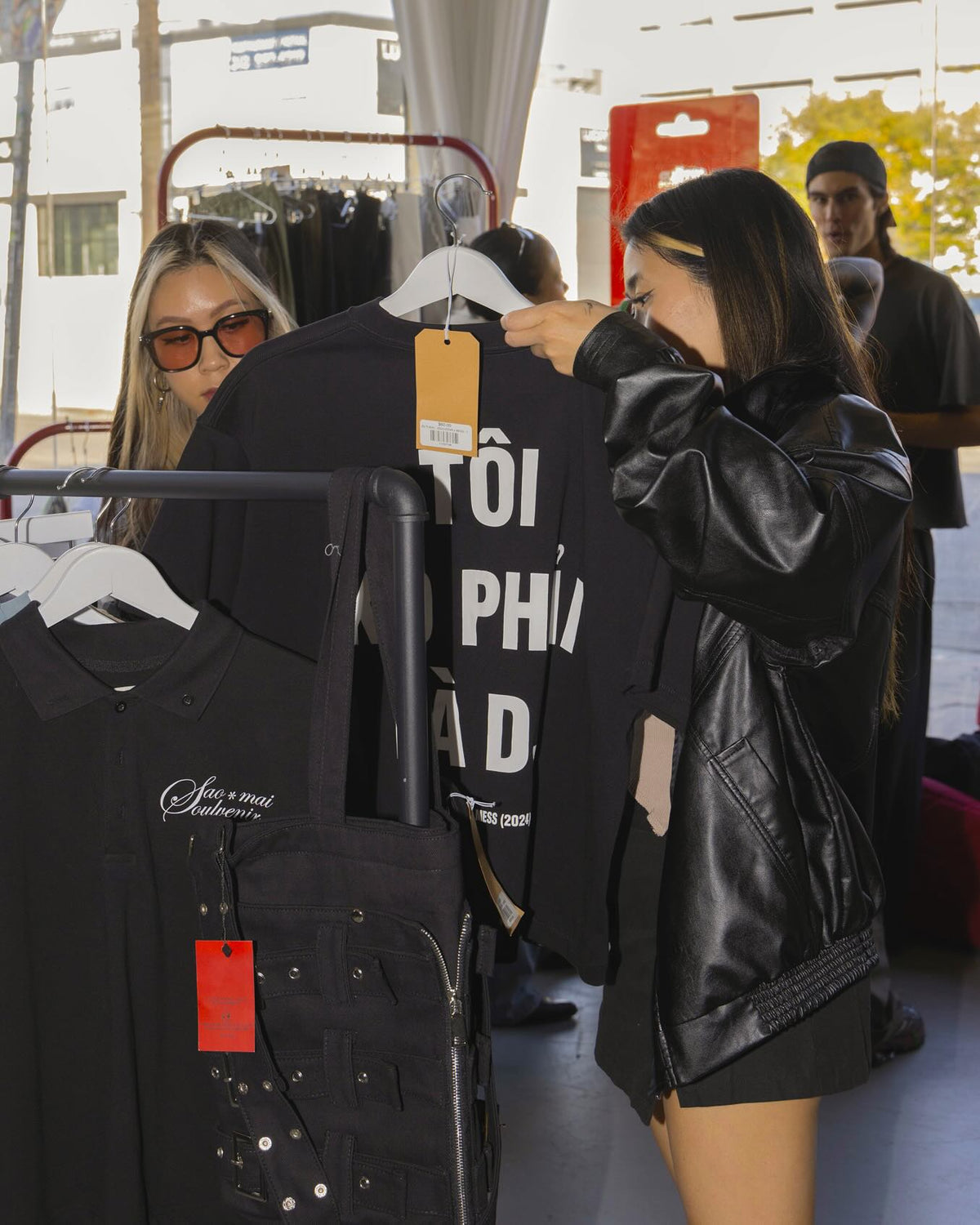 True to ASTOUD’s ethos of crafting multi-sensory cultural experiences, the event went beyond fashion. Guests enjoyed jasmine boba from Elno Teashop and vibrant Taiwanese fruit teas from KACE TEA, while artist Noon Nguyen’s Jadesky offered a menu of Vietnamese dishes, including bánh khọt mini and mì xào. Handmade Viet coconut wax candles by Sạch Goods added an intimate, artisanal touch to the shopping experience.