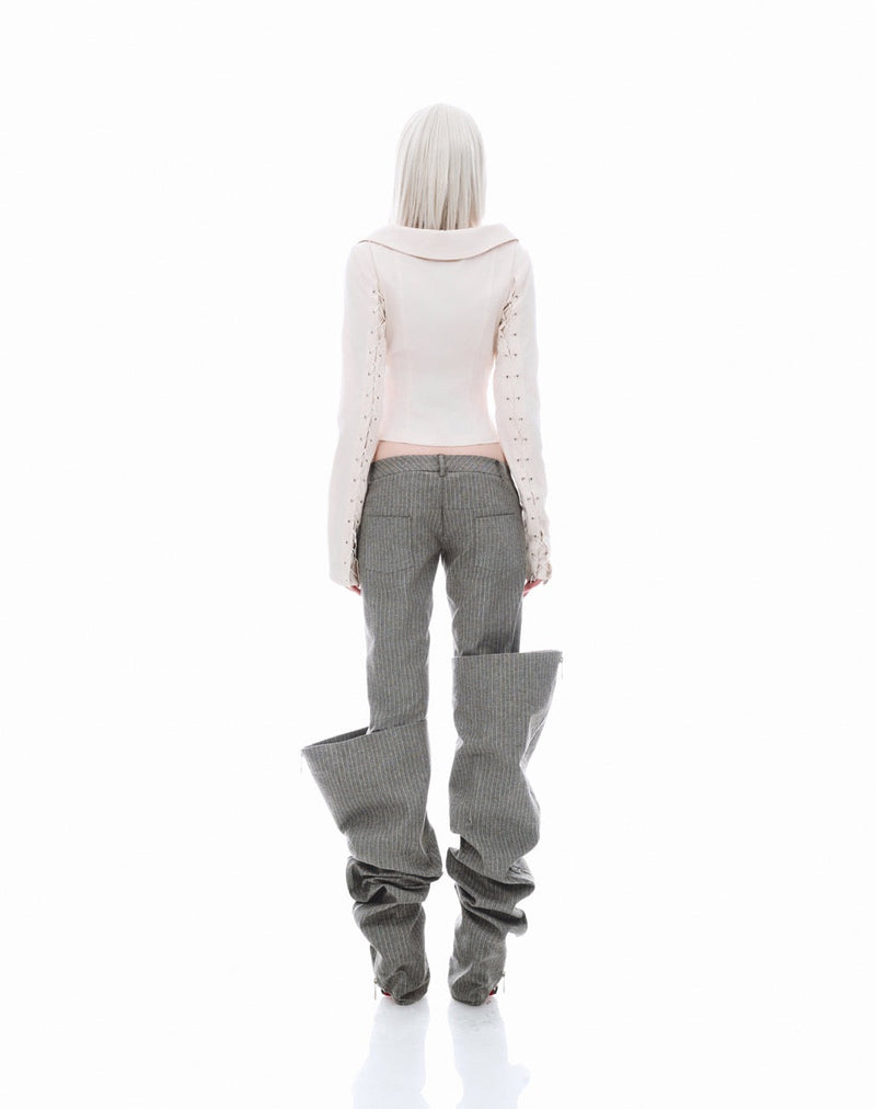 - These slim-fit jeans feature a unique design that mimics the look of a sleek pair of boots.