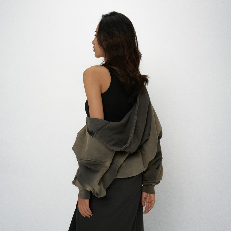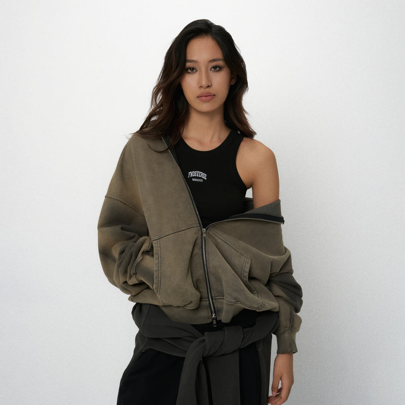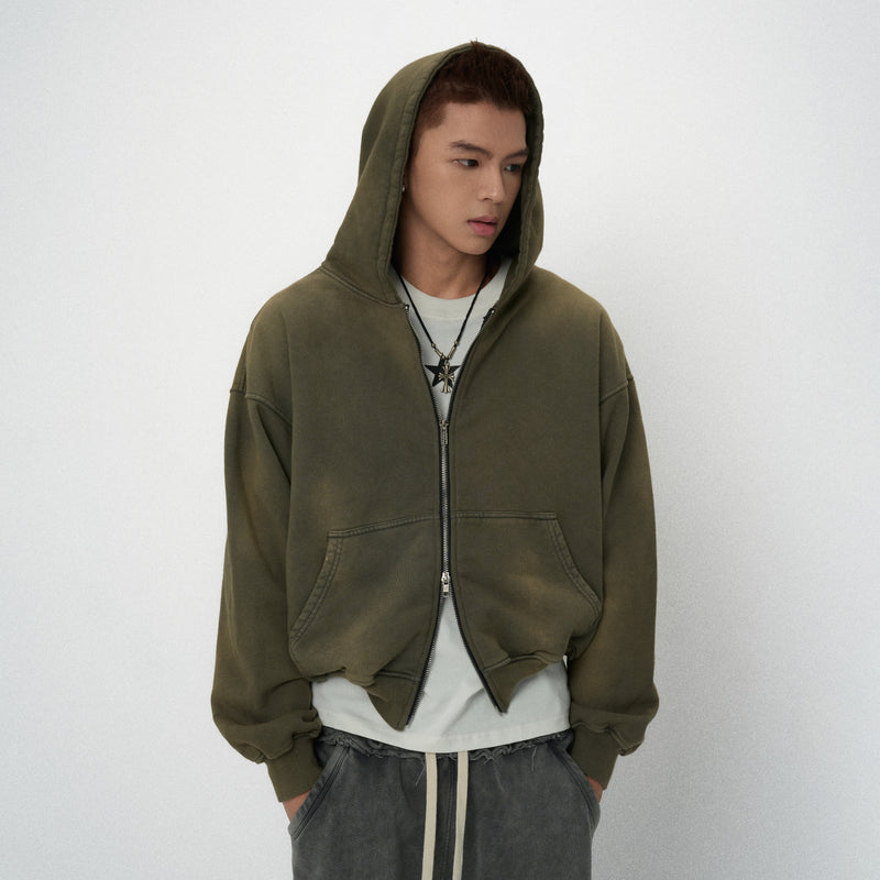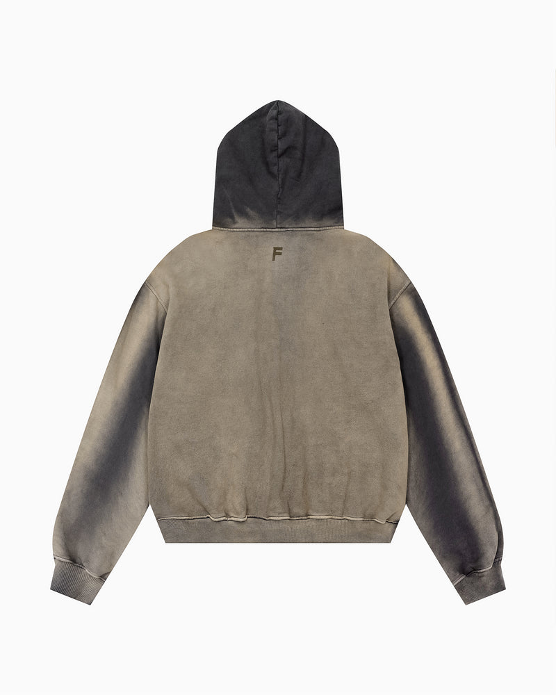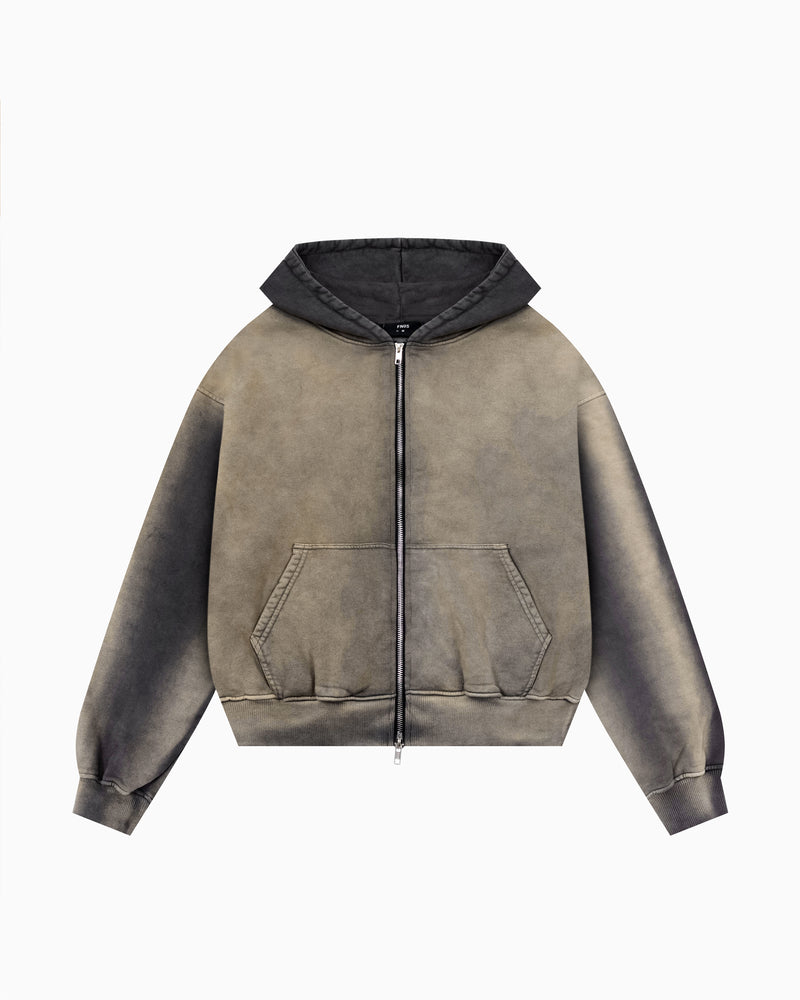 HD8 - 'Introverse' 双拉链连帽衫 - 沙色水洗