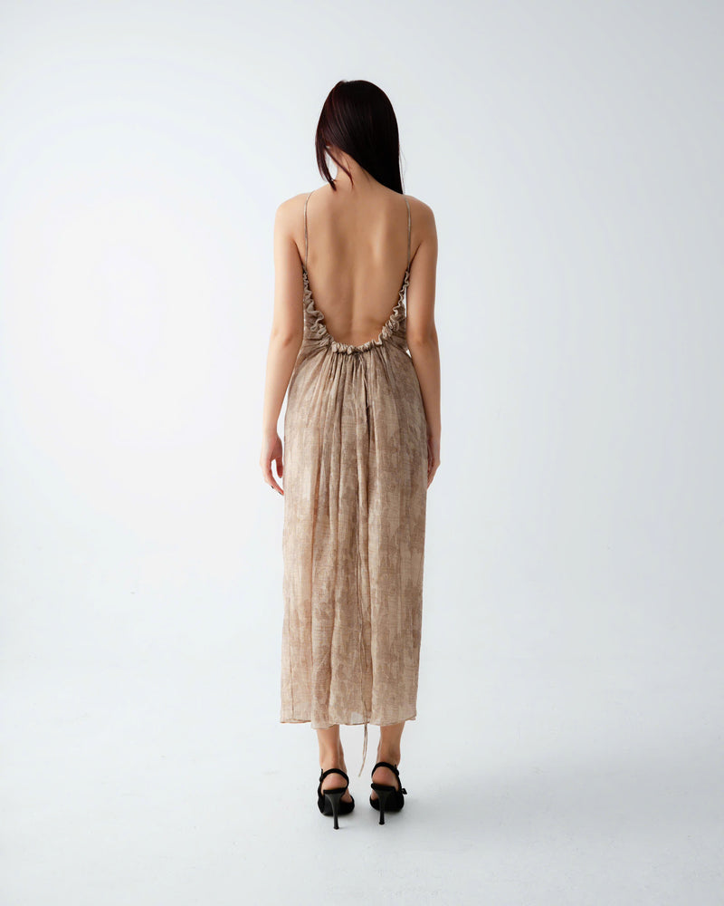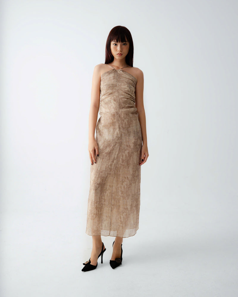 - 设计灵感源自乡村汛期泥泞的景象,领口处的设计灵感源自传统吊带背心,温柔而美丽,令人眼前一亮。
