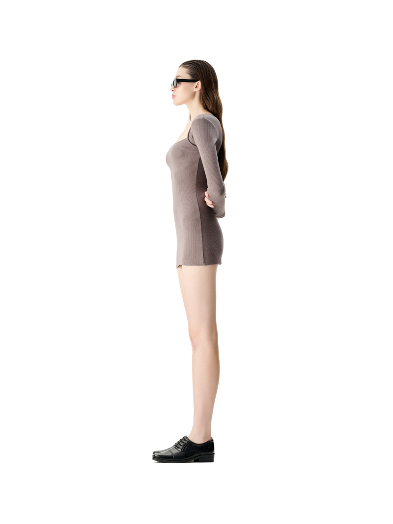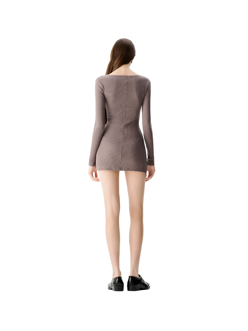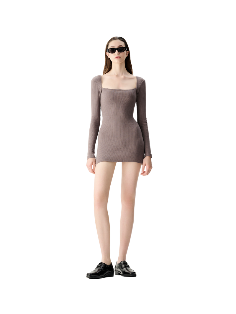 长袖方领迷你连衣裙