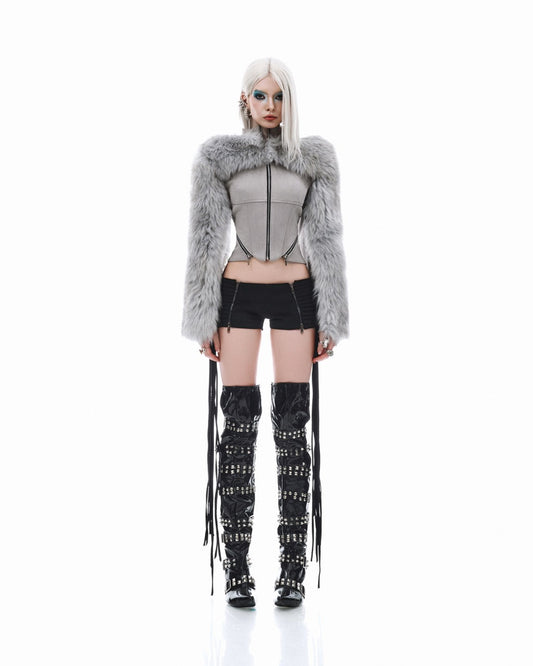 - This black faux leather corset top with spaghetti straps is made for fearless fashion lovers.