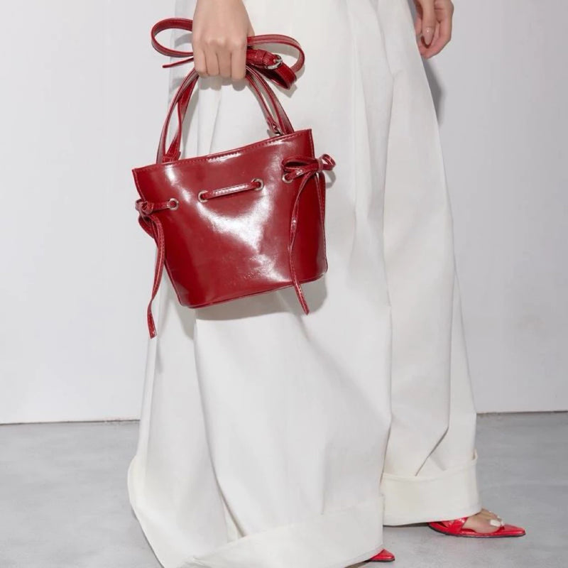 红色蝴蝶结侧边水桶包