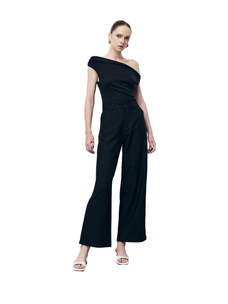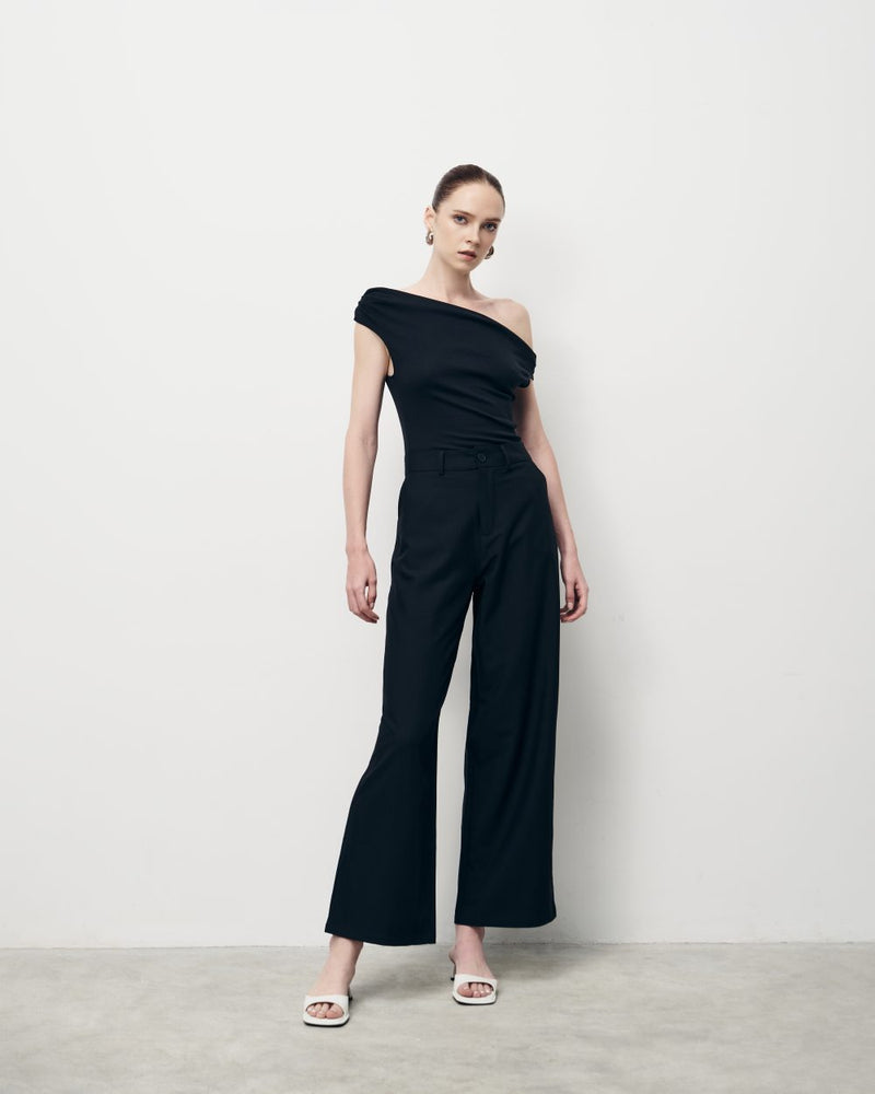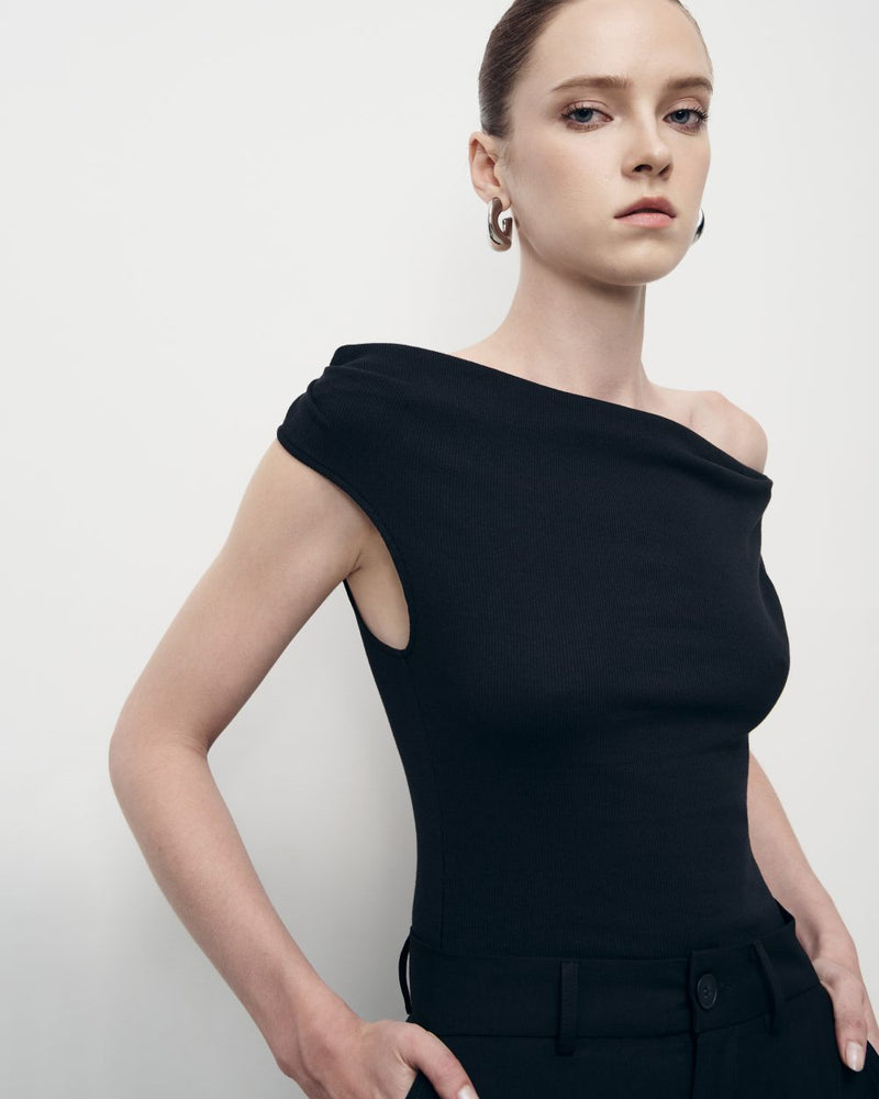 黑色无袖围脖领上衣