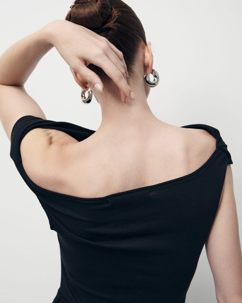 • 无袖上衣,前部有垂坠领口